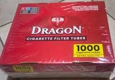 Сигаретные гильзы Dragon 1000 штук, идеально подходят для ручного скручивания сигарет. Эти гильзы оснащены фильтром, который снижает количество вредных веществ. Упаковка содержит экономичное количество — 1000 штук, обеспечивая долгосрочное использование и удовлетворение от каждой сигареты.