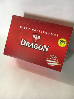 Сигаретные гильзы Dragon 500 штук, идеально подходят для ручного скручивания сигарет. Эти гильзы оснащены фильтром, который снижает количество вредных веществ. Упаковка содержит экономичное количество — 500 штук, обеспечивая долгосрочное использование и удовлетворение от каждой сигареты.