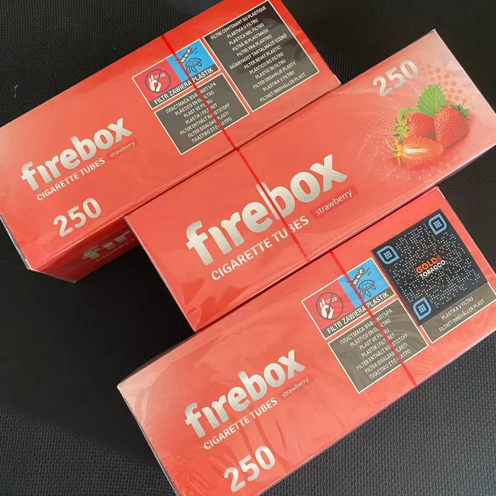 Цигарні гільзи для набивання сигарет тютюном Firebox Полуниця порадують Вас оригінальним полуничним ароматом. Цигаркові гільзи з фільтром, просоченим ароматом полуниці, урізноманітнюють звичний тютюновий смак. Гільзи стандартного розміру, рівномірно тліють та радують своєю якістю та смаком.